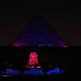 Le Spectacle son et lumière des Pyramides de Gizeh et du Sphinx est une expérience envoûtante qui plonge les visiteurs au cœur de l’Égypte ancienne. À la tombée de la nuit, les majestueuses pyramides de Khéops, Khéphren et Mykérinos s’illuminent, tandis que la voix du Sphinx raconte l’histoire fascinante des pharaons et des mystères de cette civilisation millénaire. Grâce à des jeux de lumières spectaculaires et une narration captivante, ce spectacle offre un voyage magique à travers le temps, entre légendes et réalités.
