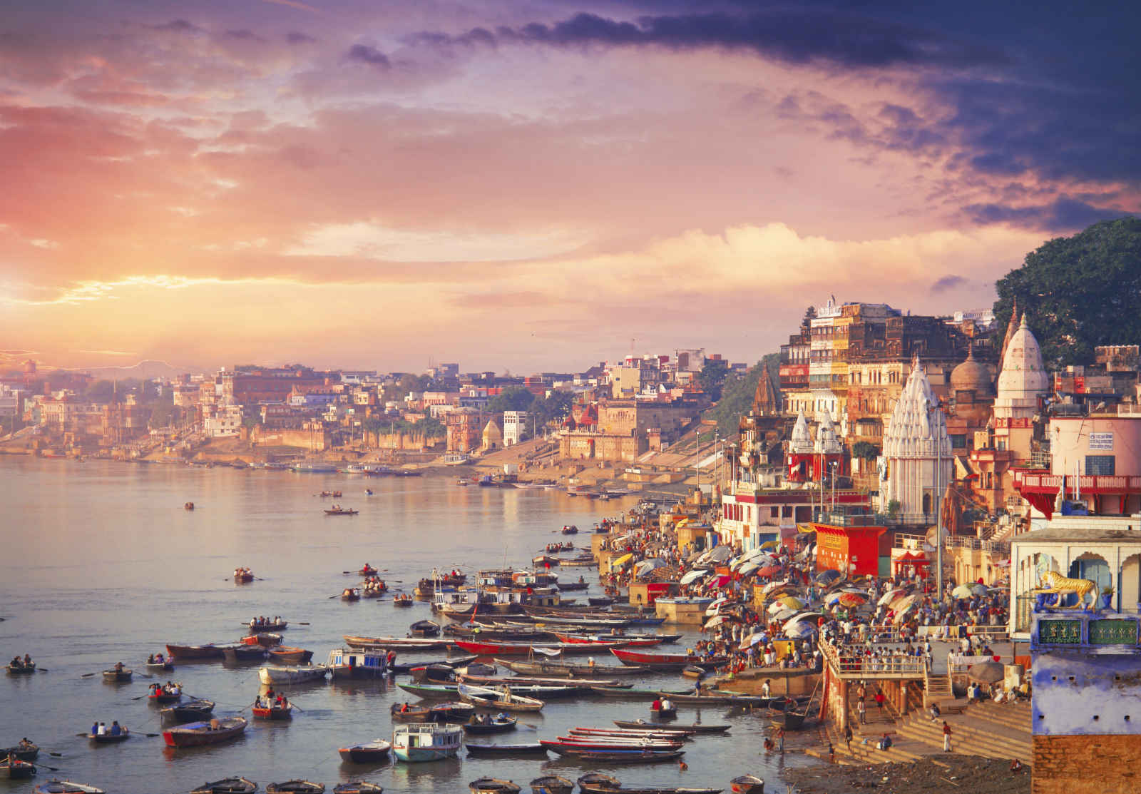 Petit déjeuner puis tôt le matin, balade en bateau sur le Gange au lever du soleil.