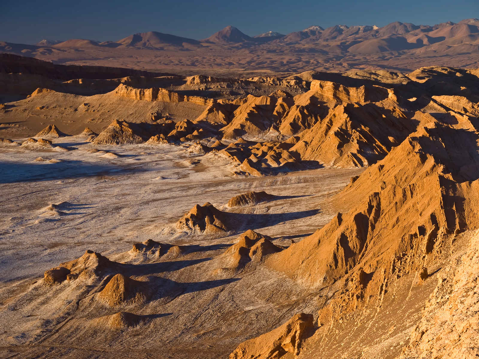 Petit déjeuner puis matinée consacrée à la découverte des formations géologiques multicolores de la vallée del Arco Iris. Dans l’après-midi, départ pour la vallée de la Lune pour y admirer le coucher du soleil sur les curieuses concrétions rocheuses aux crêtes effilées résultant de l’action conjuguée du vent et du sable. Retour à San Pedro et nuit à l’hôtel.