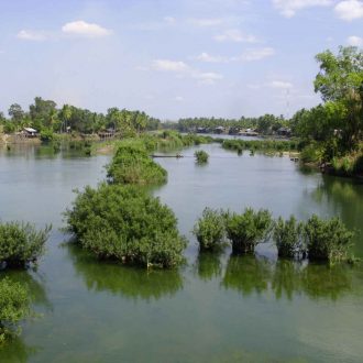 Départ ce matin pour une journée de découverte de la région connue localement sous le nom de Si Phan Don, les « 4000 îles ». Dans cette belle région, le Mékong atteint 14 kilomètres de large, et c’est tout un archipel d’îles qui apparait lorsque le fleuve recule et laisse derrière lui près de 4000 bancs de sable et îlots. Vous embarquerez à bord d’un bateau local en direction des paisibles îles de Don Khon et Don Det, connectées entre elles par un pont et une ancienne voie de chemin de fer, construits par les Français au temps des colonies. Traversez le pont pour profiter de la vue sur la rivière et suivez la voie de l’ancien chemin de fer jusqu’à une vielle locomotive laissée par les Français. Ensuite, montez à bord d’un Tuk Tuk pour rejoindre les cascades de Li Phi. Déjeuner dans un restaurant local. Retour en bateau à Done Khong. Dîner et nuit à l’hôtel.