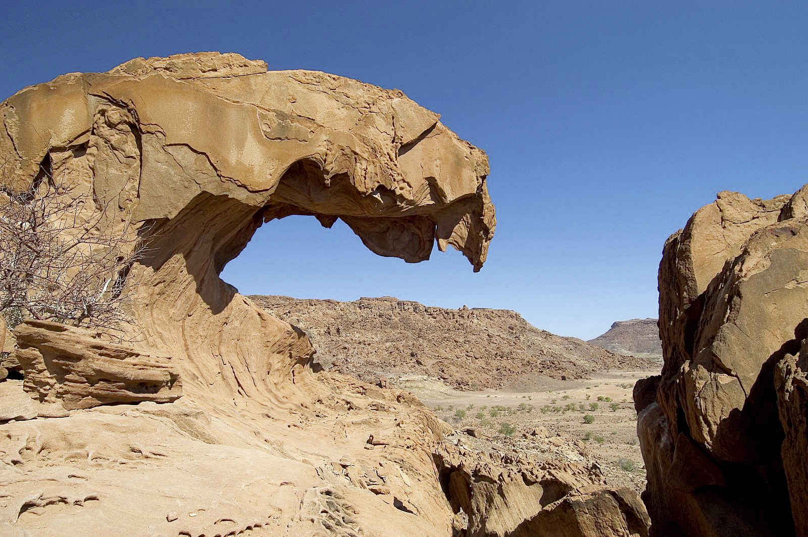 Départ matinal vers le nord.. Possibilité de faire un détour d’environ 100km pour visiter Cape Cross, l’une des plus grandes colonies d’otaries d’Afrique composées de près de 80 000 individus.. Continuation vers Uis.. Arrivée dans la fascinante région du Damaraland, très pittoresque avec ses paysages volcaniques de montagnes granitiques.. Continuation en direction du célèbre site de Twyfelfontein, (« fontaine du doute « ) à la découverte des gravures et peintures rupestres vieilles de 6000 ans.. Cette eau souterraine permet à une flore particulièrement bien adaptée de survivre dans ce décor de grès.. Possibilité de visiter les orgues basaltiques et la Montagne brûlée.. En fonction de votre horaire d’arrivée, possibilité de partir en excursion (en supplément) en véhicule 4×4 pour voir les paysages du Damaraland, avec de la chance et selon les saisons (en général en dehors de la saison des pluies) possibilité de voir les éléphants du désert. Nuit au lodge ou au camp avec petit déjeuner et en formule **** dîner inclu.
