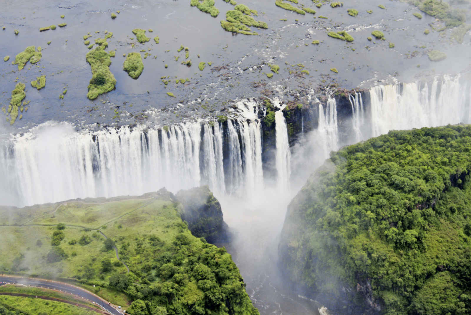 Dernier safari matinal possible.. Transfert vers Victoria Falls, au Zimbabwe.. Après-midi libre pour découvrir les chutes Victoria.. Des activités optionnelles vous seront proposées telles que safari à dos d’éléphants, marche avec les lions, rafting, canoë, survol des chutes en hélicoptère…. Nuit au lodge ou à l’hôtel avec petit déjeuner.