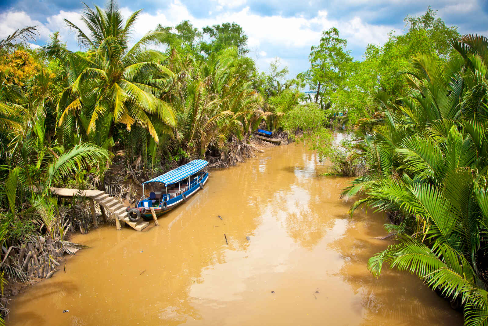 Tôt le matin, vous embarquerez à bord d’un bateau qui naviguera pendant 40 minutes sur le Mékong avant d’arriver à un marché local. Vous explorerez ce marché, typique du delta du Mékong, où les locaux se réunissent pour vendre légumes, fruits, poissons et viandes. Vous retournerez à bord du bateau pour poursuivre votre balade. En passant devant un barrage, vous apprendrez pourquoi ce système est utilisé dans la région du delta du Mékong puis vous ferez un arrêt dans un temple Cao Dai bordant le fleuve. Puis, vous visiterez une usine de noix de coco où sont fabriqués d’impressionnants tapis. Vous continuerez la journée en découvrant la campagne à vélo, en passant sous les cocotiers, au milieu des rizières : un cadre qui offre d’infinies possibilités de faire des photos. Après l’activité à vélo, vous retournerez au lodge. L’après-midi, poursuivrez avec un tour de bateau vous emmenant à la découverte d’un petit canal du delta du Mékong, à l’ombre des cocotiers et bercé par le son des clapotis des rames. Nuit au lodge.