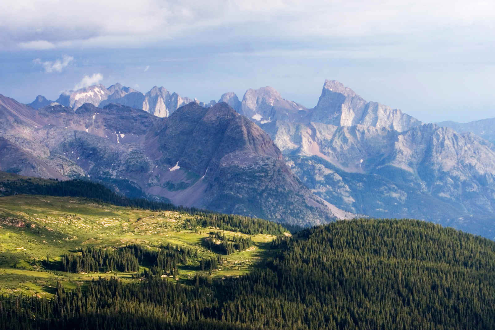 Vous débutez ici de la plus belle des manières, votre découverte des Montagnes Rocheuses. Des panoramas à couper le souffle s’offrent à vous dans ce merveilleux parc, et vous apprécierez sans nul doute, les nombreux sentiers qui sillonnent ces paysages alpins recouverts de pins ponderosa, et dominés par de grandioses pics enneigés. Si la météo le permet, et en prenant toutes les précautions d’usage, tentez l’ascension de la vieille piste gravillonnée « Old Fall River Road », premier accès routier ouvert en 1920, menant aux hautes contrées du parc national. Elle suit un ancien sentier indien emprunté par les chasseurs à la recherche du gibier abondant dans la région. La route étroite et incurvée grimpe en sens unique sur 18km, ponctués de virages en épingle. A certains endroits, les arbres sont si proches de la chaussée que les automobilistes peuvent les toucher. Puis passé Willow Park, où l’on aperçoit régulièrement des wapitis croquer le feuillage, la toundra alpine apparait dans toute sa splendeur jusqu’au col de Fall River, où siège l’« Alpine Visitor Center », au croisement de la fameuse « Trail Ridge Road ». Cet autre itinéraire légendaire du parc couvre les 80 km qui séparent ses entrées Est et Ouest, et offre des vues panoramiques spectaculaires et des observations extraordinaires de la faune et de la flore alpine.