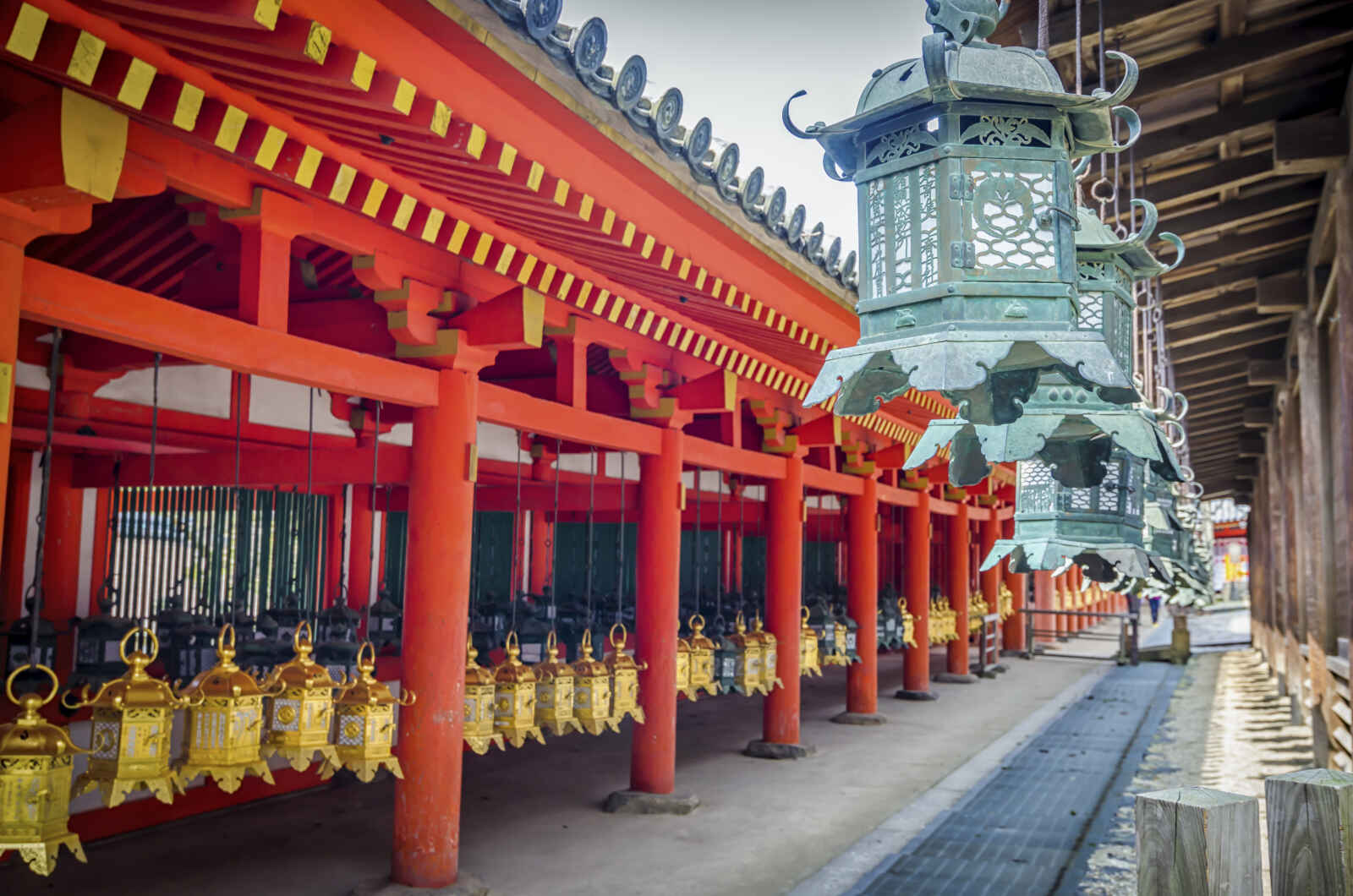 Journée de visites avec guide francophone en transport en commun. Vous prendrez le train pour Nara. Visite du temple Todai-ji, la plus grande construction de bois du monde, constitué d’un temple de Bouddha, de temples secondaires, de salles, de pagodes et de portes d’un intérêt architectural et historique exceptionnel. L’entrée dans l’enceinte du Todai-ji se fait par la plus grande porte en bois du Japon. Visite du Parc de Nara, familièrement connu sur le nom de « Parc aux daims ». Il accueille près de 1 200 de ces cervidés en semi-liberté. Visite du sanctuaire Kasuga aux bâtiments laqués de rouge, célèbre pour son allée aux trois milles lanternes de pierre. Enfin, vous flânerez dans les rues de Nara surtout dans les ruelles typiques du quartier de Naramachi situé au sud du temple Kofuku-ji. Ce vieux quartier abrite des maisons de marchands et des boutiques traditionnelles, le plus souvent en bois, et n’ont guère changé depuis. Retour en train sur Kyoto. Nuit à l’hôtel.