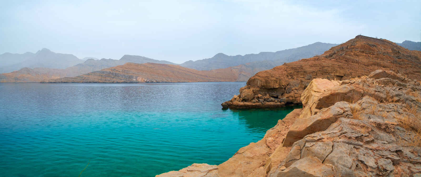 Transfert à la péninsule du Musandam où se mêlent Fjords magnifiques et eaux translucides. Assistance à la frontière.
