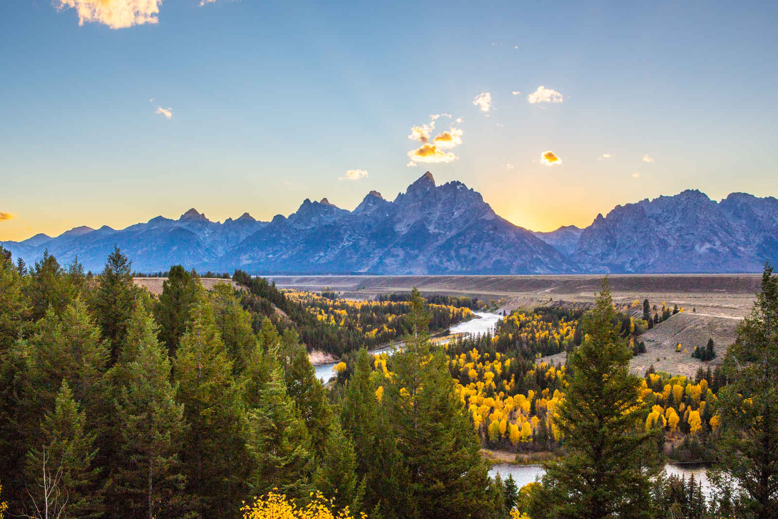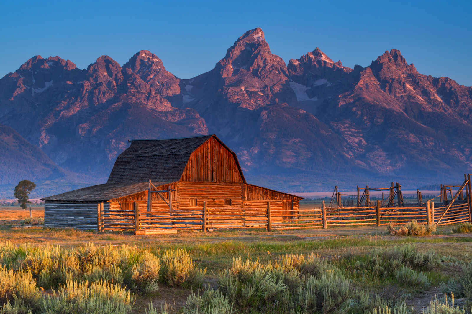 Ne vous attardez pas trop à Jackson car l’aventure vous attend dans le parc de Grand Teton, dont le joyau est la spectaculaire chaîne des Tetons, qui se dresse au-dessus d’une large vallée, près du cours supérieur de la « Snake River ». 1 250 km² de pics déchiquetés, de lacs alpins, de torrents, de terres marécageuses et de plaines couvertes d’armoises, s’offrent à vous au sud du parc national de Yellowstone. Roulez en direction de Moran jusqu’au belvédère de la Snake River. Là, perché au-dessus d’un large lacet de la rivière, vous pourrez jouir d’une des plus belles vues de « The Grand » et de ses sommets, soutenues par des contreforts aux pentes arrondies, qui ont suggéré ce nom évocateur, « Grands Tétons », aux coureurs des bois français qui chassaient dans la région au début du XIXème siècle. Des balbuzards et pygargues à tête blanche vous escorteront sans doute jusqu’à votre hébergement, un merveilleux lodge caché dans une forêt de pins, à la frontière avec le parc Yellowstone.