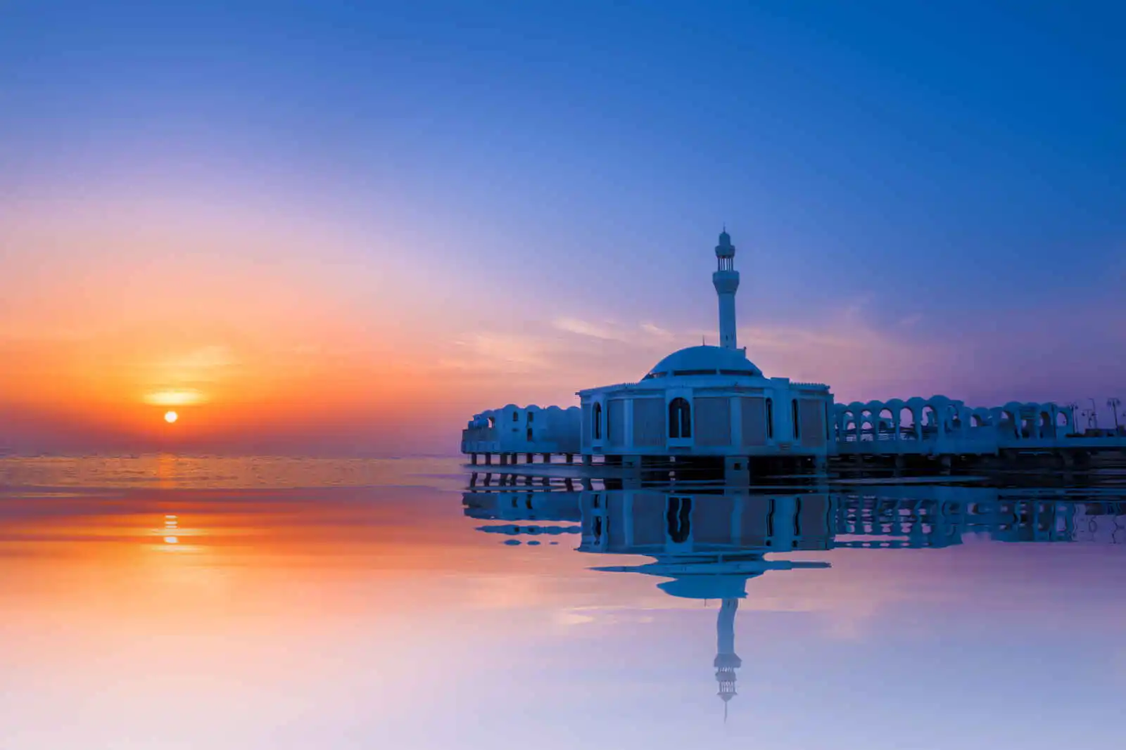 La journée se poursuivra par un tour de ville panoramique. Nous longerons la corniche, fréquentée par la population saoudienne avec ses restaurants et ses aires de pique-nique : la mosquée flottante Al Rahman (vue extérieure) a été construite sur l’eau, si bien qu’en marée haute elle semble flotter ; la fontaine du roi Fahd, quant à elle, est dotée du jet d’eau le plus haut du monde visible depuis toute la ville lorsqu’il fonctionne.