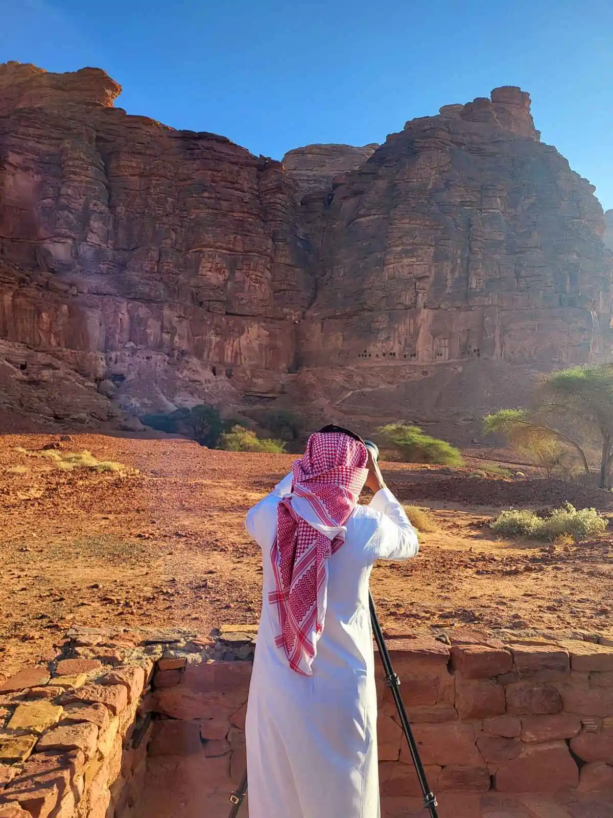 Ce matin, visite de Dadan (Al-Khuraybah), capitale du royaume de Lihyan (IIe siècle avant J.-C.) érigée au pied d’une falaise creusée de tombeaux de forme carrée, autre étape sur la route des caravanes, mentionnée dans la Bible. Puis visite de Jabal Ikmah, bibliothèque à ciel ouvert où sont visibles des inscriptions dans diaérentes langues (araméen, dadanique, thamudique et nabatéen).