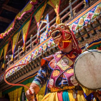 Petit déjeuner puis transfert matinal à l’aéroport de Delhi et envol pour Paro. Accueil à l’arrivée et transfert (1 h 30 de route) à l’hôtel à Thimphu, la capitale. En fin d’après-midi, visite du mémorial Chorten, de l’école de Peinture, du musée du Textile et du musée du Folklore, ou bien possibilité de flâner dans les rues pour découvrir les petites échoppes de textile ou d’artisanat. Dîner et nuit à l’hôtel.
