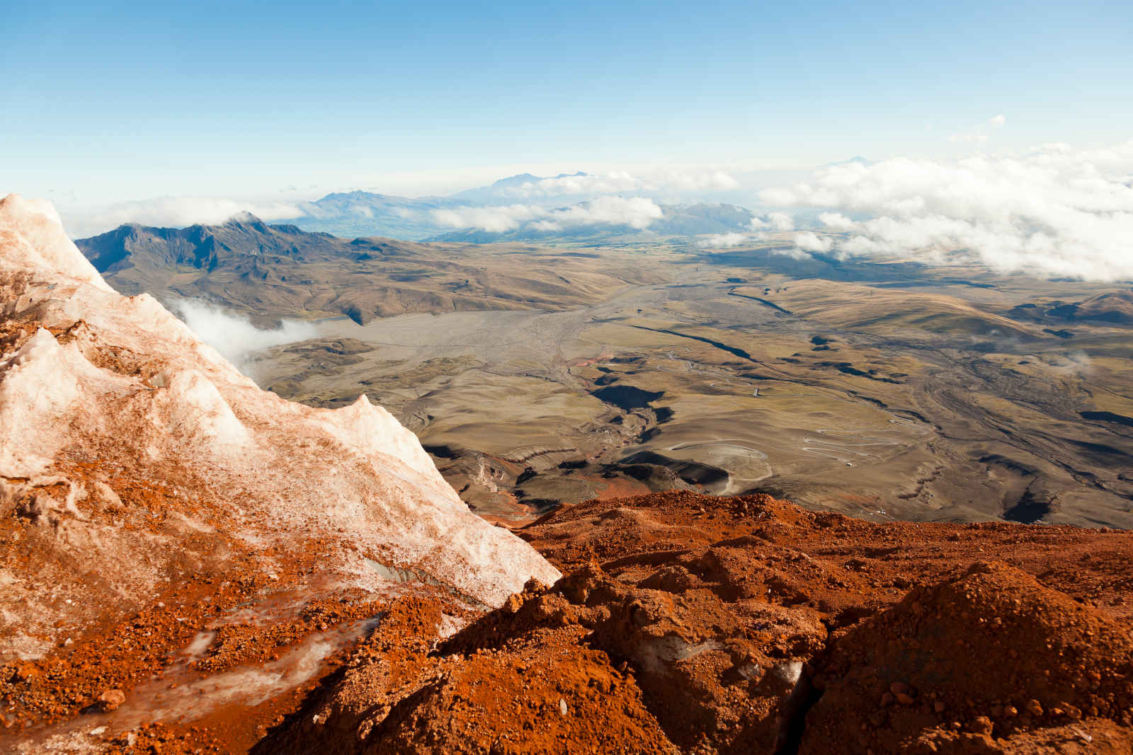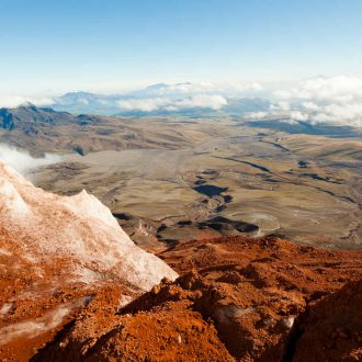 Petit déjeuner puis départ pour la visite du parc national du Cotopaxi (en moyenne 4 500 m alt.), 2e plus haut sommet du pays. En cours d’excursion, vous vous rendrez à la lagune de Limpiapungo. Puis route pour Riobamba (2 750 m alt.). Nuit à l’hôtel.