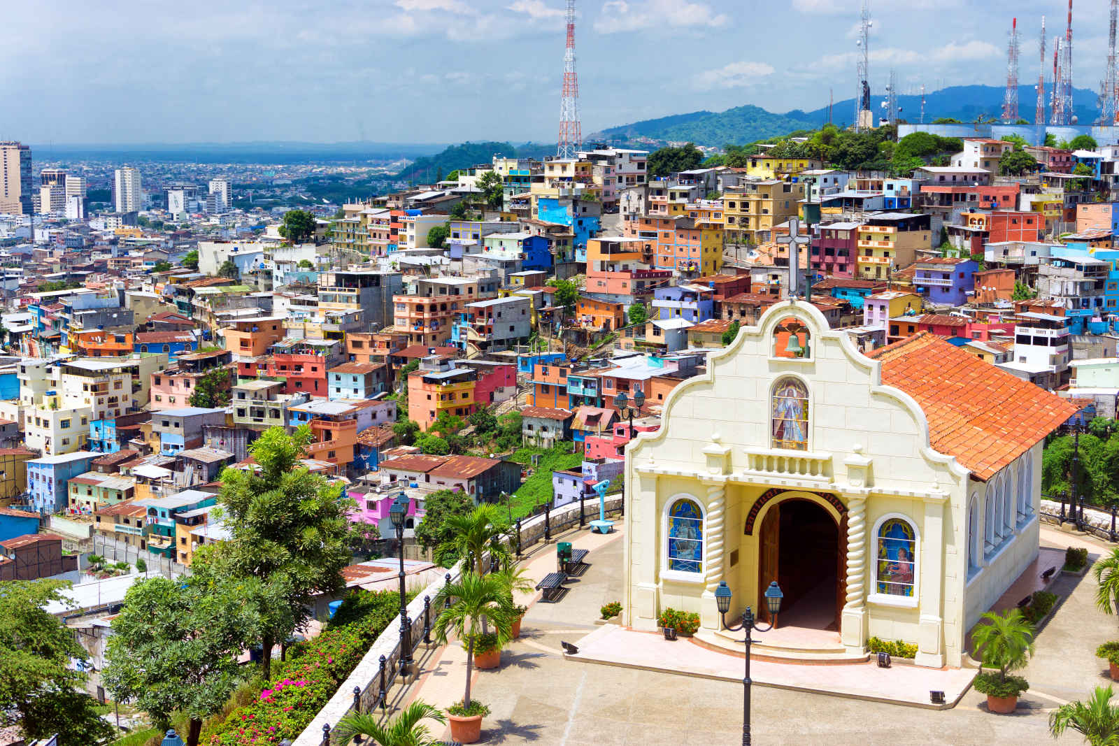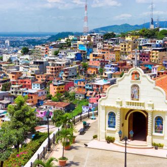 Petit déjeuner puis cap à l’ouest vers le Pacifique par une longue descente au milieu des montagnes, vous arriverez dans des plaines fertiles où bananeraies et cultures maraîchères s’étendent à perte de vue. L’après-midi visite de Guayaquil, capitale économique : la cathédrale néo-gothique, le parc Bolivar et ses iguanes en liberté, le Malecon, promenade le long du fleuve jusqu’au quartier pittoresque de Las Peñas. Vous gravirez les 444 marches sur les flancs du Cerro Santa Ana jusqu’au mirador offrant une vue sur la baie. Nuit à l’hôtel.