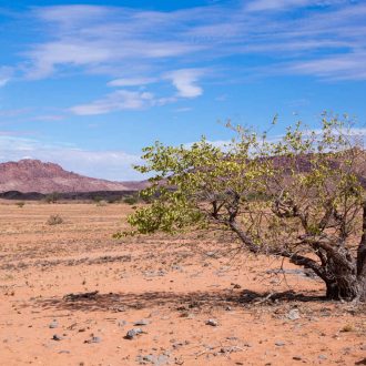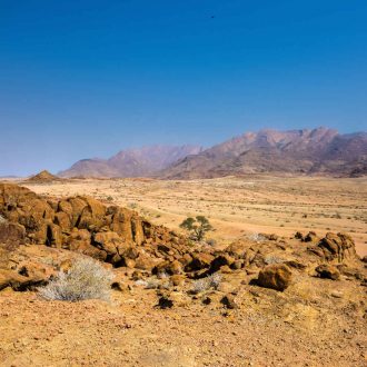 Départ matinal en direction du Damaraland. Arrêt possible à la forêt pétrifiée, site classé monument national en 1950, regroupant d’énormes troncs d’arbre fossilisés, âgés de plus de 250 millions d’années. Arrivée au lodge. Réservez une excursion en véhicule 4×4 organisée par le lodge pour voir les paysages du Damaraland. Avec de la chance et selon les saisons (en général en dehors de la saison des pluies) possibilité de voir des éléphants du désert. Dîner et nuit au lodge avec petit déjeuner.