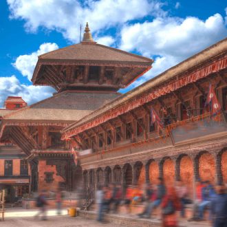 Visite de Pashupati Nath, temple hindou majeur dédié au dieu Shiva et passant pour être le « Varanasi népalais ». Un complexe de temples et oratoires s’étale le long des ghâts qui descendent vers la rivière sacrée Bagmati. De nombreux foyers de crémation témoignent de l’intense activité du site qui est à son comble lors de Shivaratri, festival dédié à Shiva. Rencontre avec Anuman Baba et ses acolytes (s’ils sont présents sur le site), un groupe de saddhus qui vivent à demeure sur les ghâts du temple. L’après-midi, visite de la capitale du Népal, fondée par Gunakama Dev en 723, en commençant par Durbar Square, siège de la royauté. On y trouve le temple Taleju, la gigantesque statue de Kal Bhairab, le palais de Basantapur et le temple de Jagannath réputé pour ses sculptures érotiques, la maison de Kumari, seule déesse vivante au monde. Promenade en rickshaw dans les ruelles animées du vieux quartier d’Ason jusqu’à Thamel. Nuit à l’hôtel.