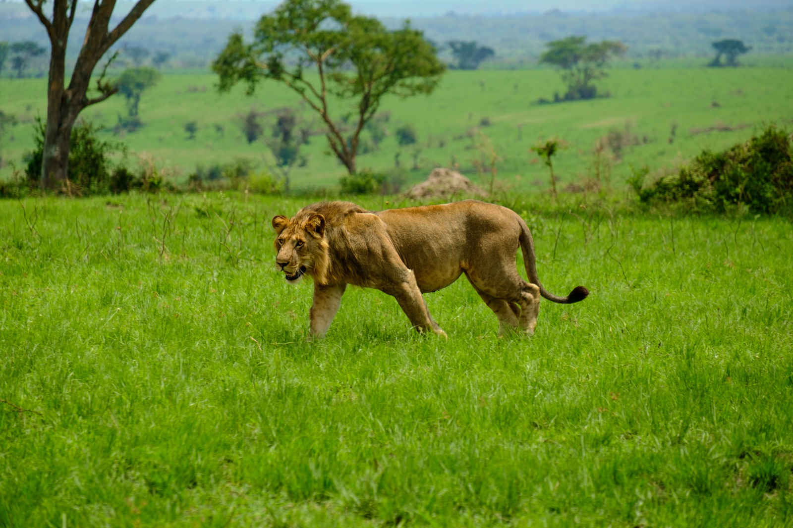 Petit déjeuner et safari à l’aube, vers la zone d’accouplement des cobes ougandais. Déjeuner au lodge, puis route vers Ishasha, le secteur sud du parc, renommé pour ses lions arboricoles. Safari en cours de route. Dîner et nuit au lodge.