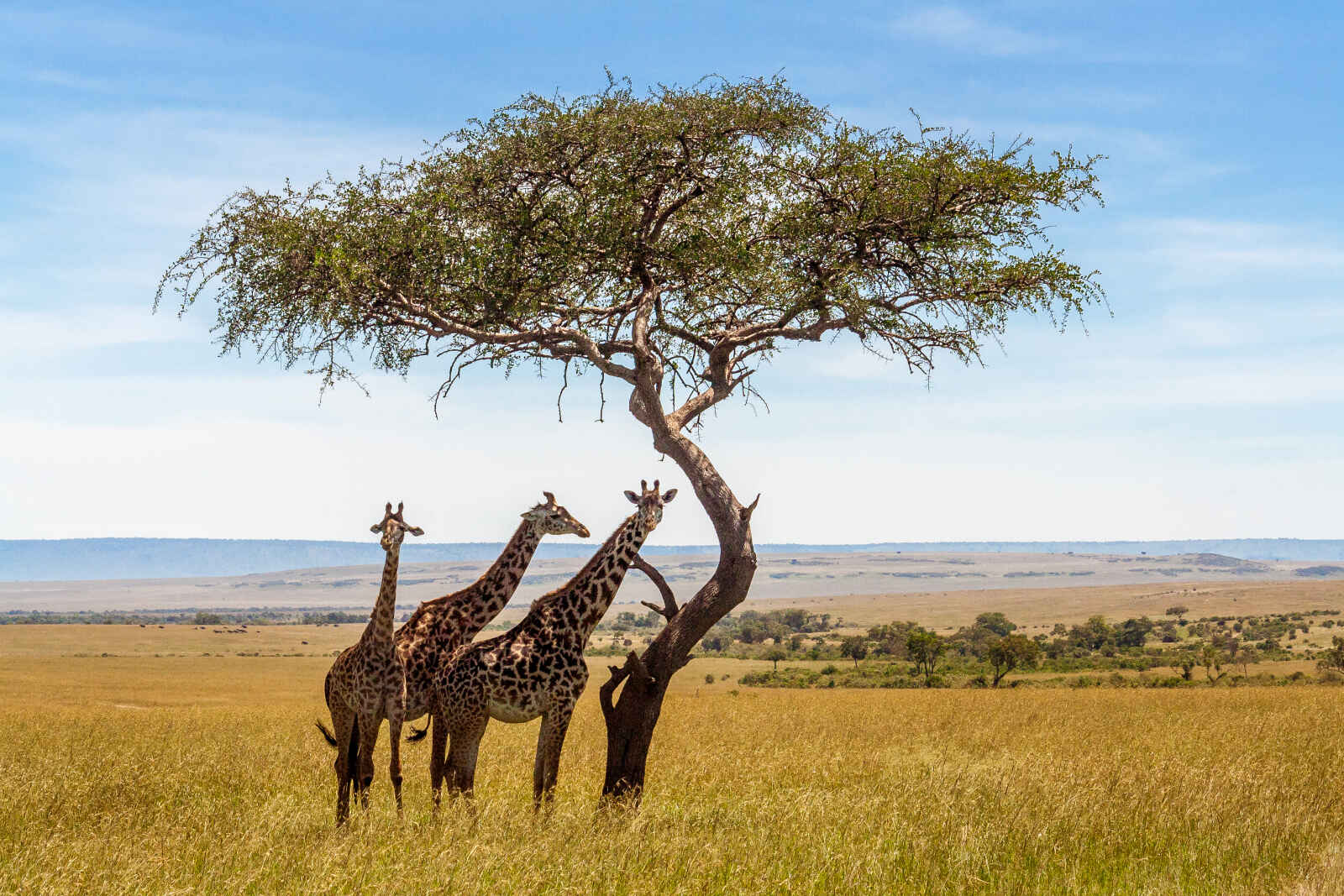 Route via Narok pour la fameuse réserve du Masaï Mara, prolongation naturelle du parc du Serengeti voisin situé en Tanzanie, cette réserve de 1 500 km² environ, à une altitude moyenne de 1 650 m, possède un paysage de plaines, d’acacias et d’arbres isolés et une faune riche et variée. C’est en effet dans ce parc du Serengeti et la réserve du Masaï Mara que se déroule chaque année l’extraordinaire migration des gnous. Arrivée et installation au camp. Puis départ pour un safari photo en fin d’après-midi à la recherche des fauves. à cette heure, la lumière est idéale pour le coucher de soleil. Dîner et nuit au camp.