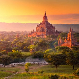 Petit déjeuner puis visite de Bagan : les temples Lawkahteikpan, Mingalazedi et Abeyadana, aux fresques admirables, les pagodes Ashe Anauk Petleik et Lawkananda. L’après-midi, visite du Sud-Est de Bagan avec les temples Damayangi, Lemyetnna, Payathonzu, et Nandamanya. Continuation à la pagode Bupaya pour assister au coucher du soleil sur la rivière Ayeyarwaddy. Nuit à l’hôtel.