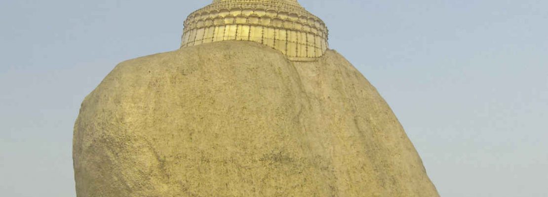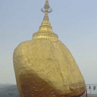 Deux cheveux de Bouddha, précieusement conservés à l’intérieur d’un stupa trônant au sommet du Rocher d’Or, tiennent depuis des siècles ce bloc de granit en équilibre au-dessus du précipice. C’est du moins ce que la légende raconte !