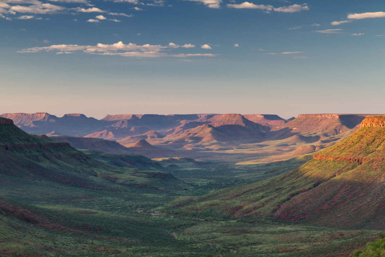Départ matinal vers le Damaraland. En cours de route, il est possible de visiter un village de démonstration Himba ouvert au public (entrée à régler sur place). Installation au lodge et temps libre pour profiter de la vue splendide sur la vallée depuis la terrasse ou de participer à une activité (avec supplément) proposée par lodge. Diner et nuit au lodge avec petit déjeuner.