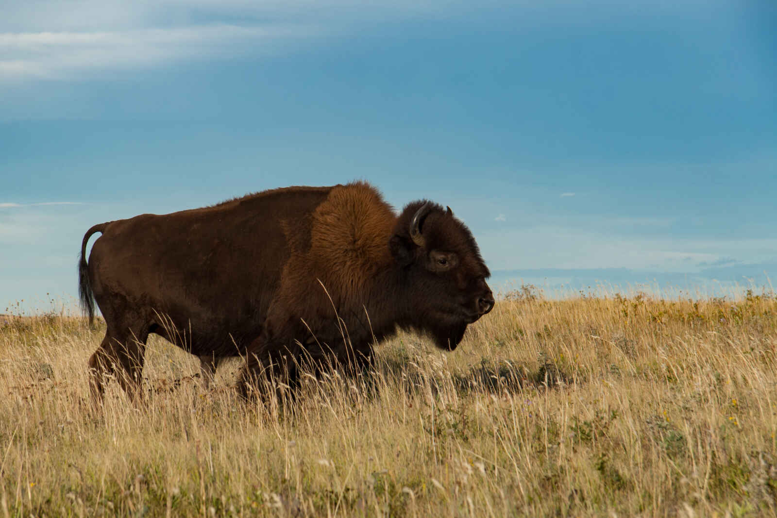 Route en direction de Waterton Park, en longeant vers le sud les montagnes Rocheuses, à travers un océan de verdure infini. Très loin devant vous, se déroule le ruban d’asphalte de la Highway 2 traçant son sillon rectiligne grisâtre dans le vert pâle des indolentes prairies, qui couvrent ces terres planes sur des milliers d’hectares. Passage à Fort Macleod, le plus ancien établissement d’Alberta fondé en 1874 par la police montée du Nord-Ouest. Cette bourgade pourra faire l’objet d’un court arrêt, afin de visiter son intéressant musée, qui retrace l’expédition de ces officiers surnommés les « Mounties ». Vous bifurquez à l’ouest et stoppez au site historique « Head-Smashed-In-Buffalo Jump », la culbute à bisons des indiens Blackfeet, la plus vieille et la mieux conservée du monde, inscrite au patrimoine mondial de l’Unesco. Plus loin, vous commencez à apercevoir les hautes et imposantes silhouettes des « Rocky Mountains ». Arrivée dans l’après-midi à Waterton, charmant village et cœur touristique du parc, posé sur la rive du lac Waterton Supérieur.