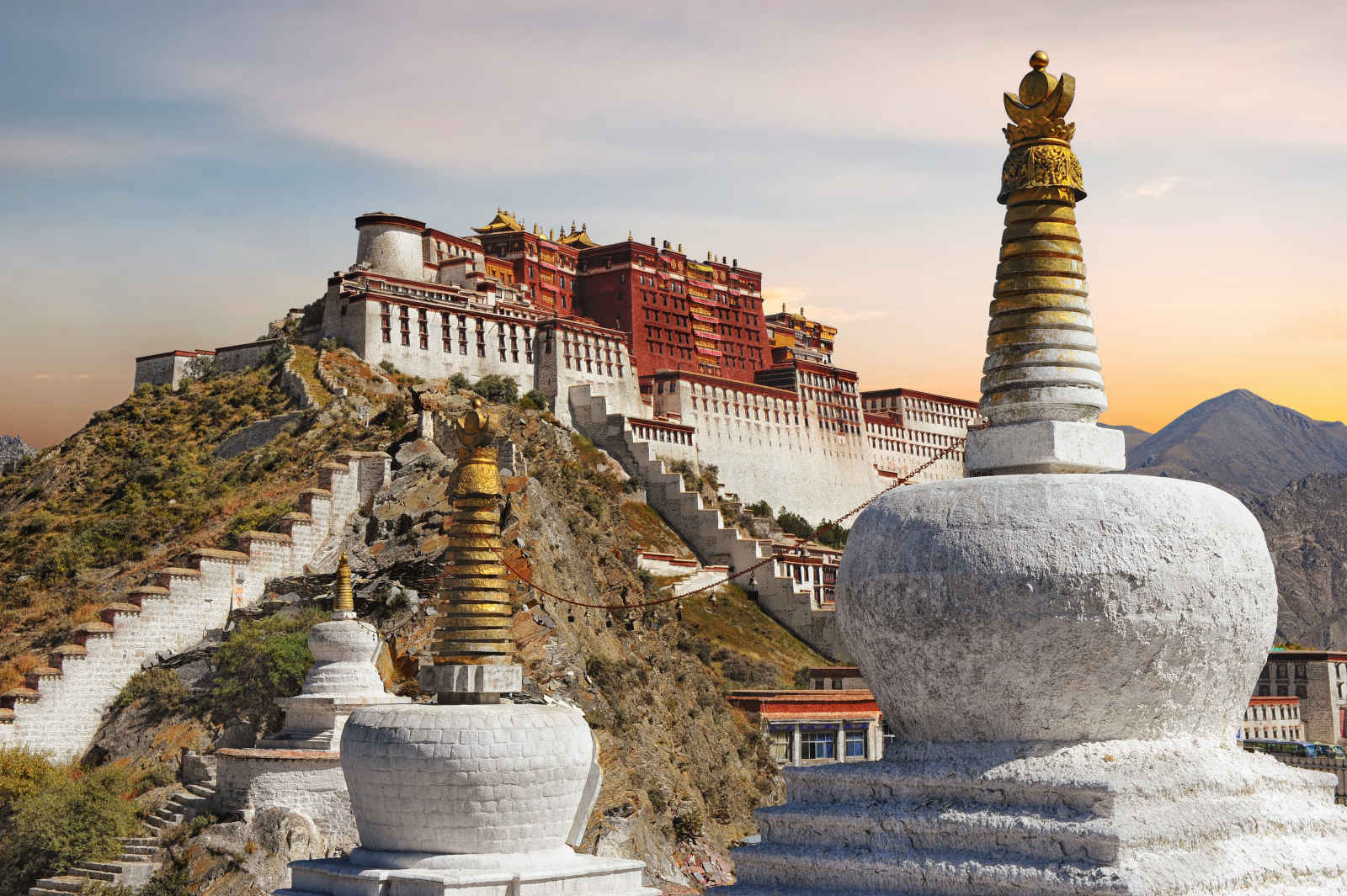 Visite du palais du Potala, un palais-forteresse du XVIIe siècle, situé sur « la colline rouge », patrimoine mondial de l’UNESCO. L’édifice incarne, avec ses treize étages, l’union du pouvoir spirituel et du pouvoir temporel et leur rôle respectif dans l’administration du Tibet. L’après-midi, départ pour la visite du temple Jokhang qui est le premier temple bouddhiste construit au Tibet. Centre spirituel de Lhassa et lieu de pèlerinage depuis des siècles, il combine une culture tibétaine avec des influences en provenance du Népal, la Chine et l’Inde. Découverte du bazar de Barkhor, le plus populaire de la ville. Les magasins vendent des Thangkas (peintures sur toile tibétaine déroulante), qui est un art unique du Tibet représentant les thèmes de la religion, l’histoire, la littérature, la science et les coutumes du Tibet. Vous pourrez goûter du thé tibétain dans le Tea House. Nuit à l’hôtel.