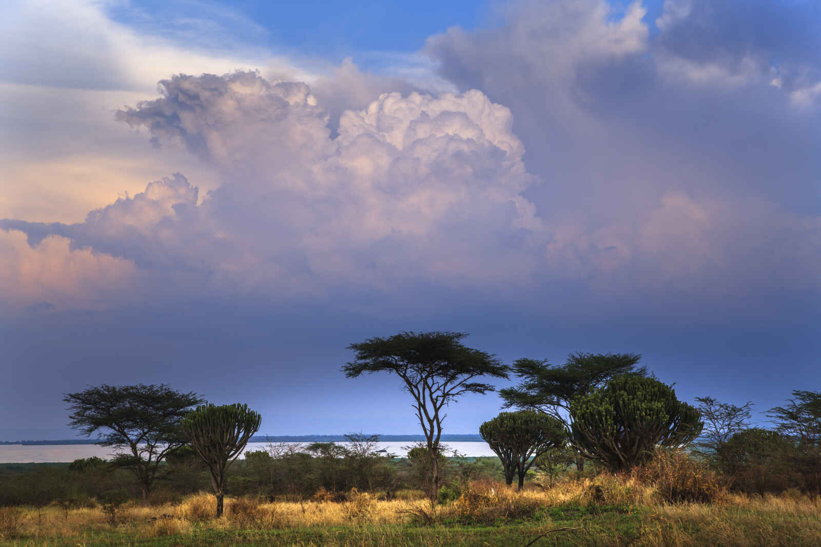 A la sortie du parc, la branche occidentale du rift est occupée par le lac Albert et sa frange côtière où les troupeaux de petits zébus sont surveillés par des fiers et grands pasteurs Alurs dont les femmes cultivent des champs de manioc et de coton ou renouvellent le chaume de leurs spacieuses cases. Rapide crochet à Butiaba, port lacustre actif en son temps, une fine langue de terre, bordée de palmiers borassus centenaires, s’avance dans le lac à l’eau chaude. Plus au sud commencent les grandes plantations de thé qui étalent leur verdure à perte de vue. Arrivée à la réserve de Kabwoya, fréquentée par buffles, hippopotames, cobes d’Ouganda et phacochères, ainsi que des singes. Nuit à l’hôtel.