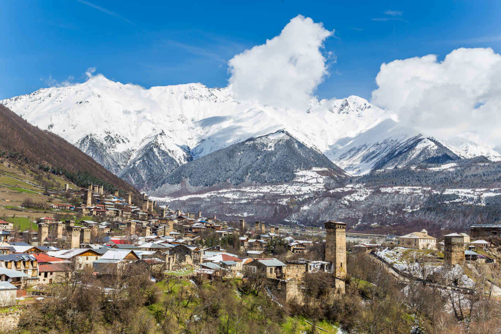 Le matin, départ en 4×4 vers la ville d’Ouchgouli, un site classé au patrimoine mondial de l’UNESCO. Dans cette ville, le temps s’est arrêté et les tours svanes, construites il y a des siècles, regardent toujours fièrement vers le plus au pic de Géorgie, Shkara (5 201m). Vous visiterez le village et la petite église Lamaria.
