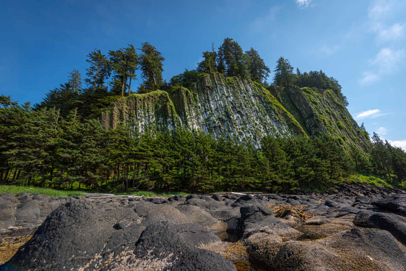 Epargnées par la dernière période glaciaire, ces îles préservent des forêts pluviales tempérées côtières aussi épaisses et impénétrables que celles d’Amazonie et dans lesquelles on peut encore trouver des spécimens fort rares du monde végétal et animal. Les criques et les fjords qui séparent les îles les unes des autres sont baignés d’eaux froides et riches en nutriments, terrains d’alimentation de choix pour les orques, les baleines à bosses et les dauphins. Ces eaux sont tellement fécondes qu’en cabotant au fond de certaines baies avec votre kayak, il vous semblera parfois naviguer au-dessus de constellations d’étoiles de mer aux couleurs arc-en-ciel. S’il n’est pas aisé d’observer toutes ces merveilles naturelles au sud de l’archipel, sa zone nord délimitée par l’île Graham est beaucoup plus accessible, et notamment le parc provincial de Naikoon, territoire traditionnel de la nation haïda. On y trouve de nombreux lieux d’importance culturelle et spirituelle ainsi que des sites de villages historiques, mais vous pourrez également y randonner facilement à travers une belle forêt pluviale, des zones humides et des tourbières survolées par des pygargues et des faucons pèlerins. Et en flânant sur les kilomètres de plages bordées de dunes de sable, vous aurez certainement l’opportunité d’observer au large les baleines grises.