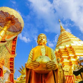 Petit déjeuner puis la matinée sera consacrée à la vieille ville avec un arrêt à l’ancienne muraille, aux douves et à une porte de la vieille ville. Continuation avec la visite des plus beaux temples : le Wat Prah Singh et son Viharn aux magnifiques peintures murales. Puis à pied vous rejoindrez le Wat Phan Tao, ancienne demeure princière en bois et le Chedi Luang avec son énorme reliquaire en partie détérioré suite à un tremblement de terre. Tour en tuk tuk dans les rues de la vieille ville qui vous déposera au grand marché central de Varorot et sa section des fleurs côté rivière. Déjeuner au restaurant « Antic House » magnifique maison ancienne en teck. L’après-midi, visite du très vénéré temple de Doi Suthep (1 056 m. alt.). L’accès se fait par un grand escalier avec des rampes en forme de naga (serpent mythologique). Depuis la terrasse du temple la vue embrasse toute la vallée. Transfert à l’aéroport de Chiang Mai et envol pour Paris. Nuit à bord.