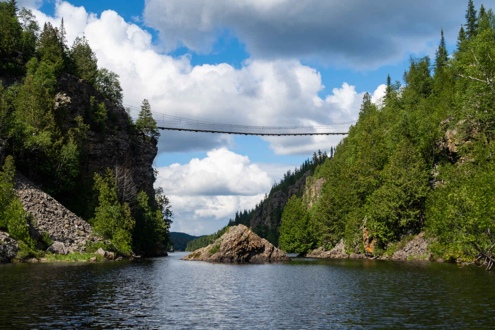Journée complète à la découverte de ce merveilleux parc, véritable concentré de nature souveraine. Des kilomètres de sentiers parcourent les forêts touffues de ce territoire éminemment sauvage et décuplent vos chances d’apercevoir une faune abondante, dont la gélinotte huppée, l’ours noir, le castor, l’orignal et le lynx du Canada sont les magnifiques représentants. Vous pouvez également opter pour une excursion en kayak sur le splendide lac Loïs, réputé pour ses nombreuses îles et multiples baies, où vous pourrez faire halte et y observer une faune aquatique variée, comme l’amusante loutre des rivières. Si vous ne grimpez pas au sommet du Mont Dominant pour une vue imprenable sur les collines Abijévis, empruntez l’escalier hélicoïdal courant le long d’un escarpement vertigineux sur le sentier « Les Paysages », ou la fameuse passerelle suspendue, longue de 64 mètres, qui surplombe de 22 mètres les eaux du lac Lahaie sur le sentier « La Traverse ».