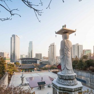 Visite du Temple bouddhiste Jogyesa. Le temple a servi dès 1910 de résidence principale pour le moine Han Yong-un. Le bâtiment principal érigé en 1938 est majestueux, décoré de nombreuses couleurs. A l’intérieur se trouve une statue du bouddha Sakyamuni. A l’extérieur, en face, se trouve une pagode de sept étages contenant des reliques de bouddha. Visite du Palais de Gyeonbokgung qui est le plus grand palais de Séoul. Découverte du Folk Museum qui se trouve dans un des bâtiments traditionnels. Balade dans la vieille rue d’Insadong avec ses artisans. Vous visiterez ensuite le ravissant village traditionnel de Hanok, Bukchon. Promenade dans le marché Namdaemun. Nuit à l’hôtel.