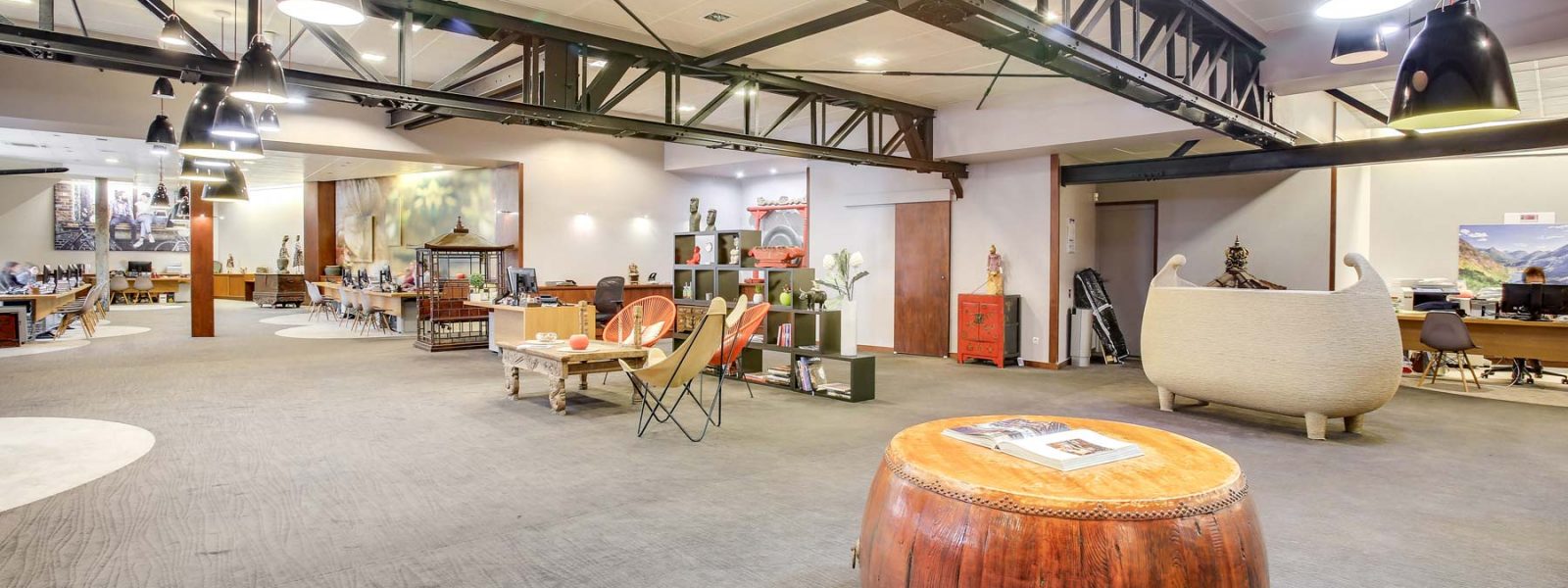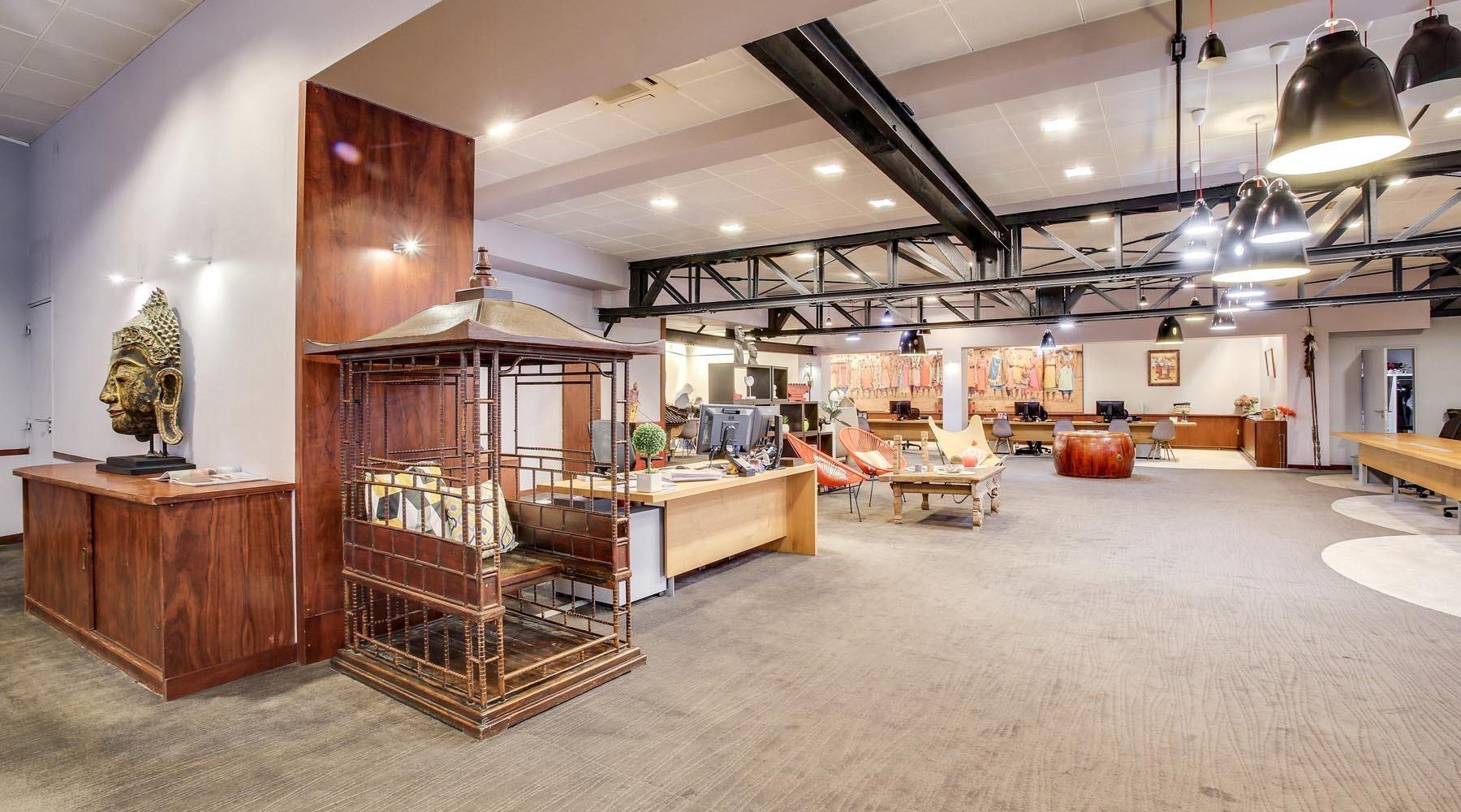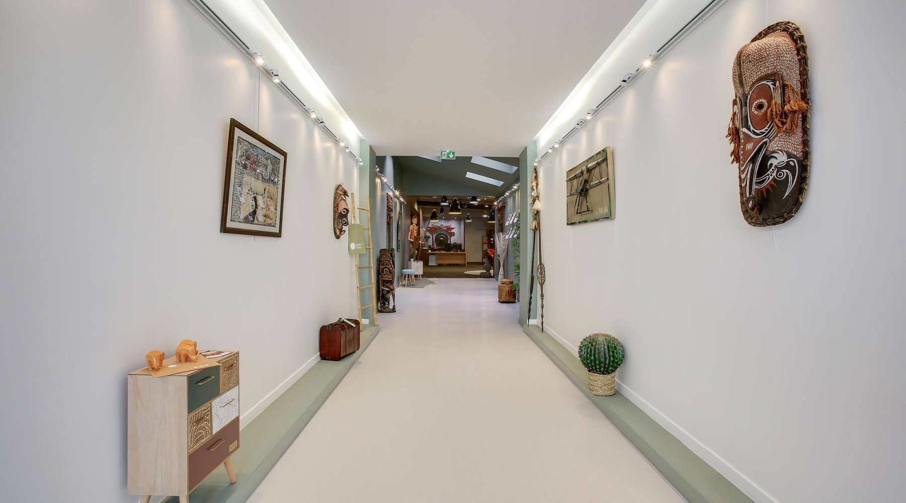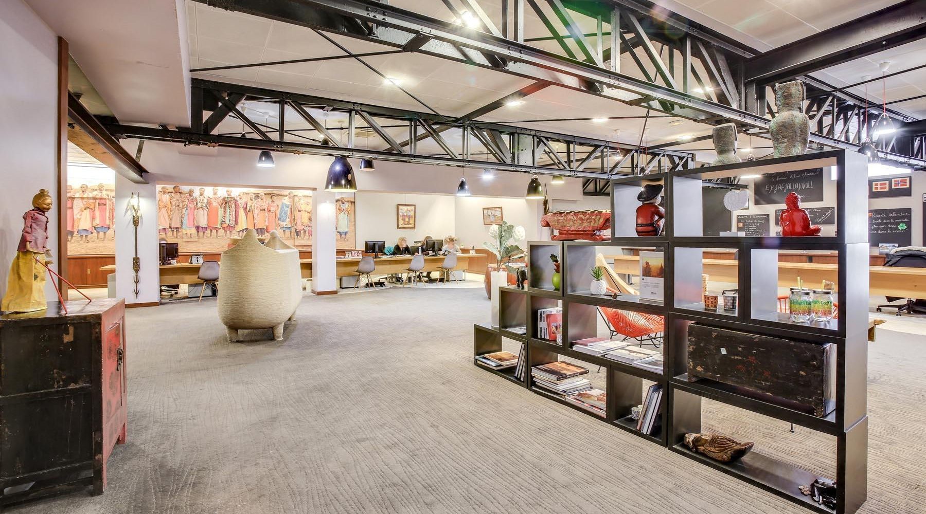 Les lumières tamisées de ce couloir refléteront les courbes des statues asiatiques vous invitant à pénétrer dans ce temple du voyage sur mesure. Vous serez plongé dans un univers réunissant les quatre coins du monde. Les bouddhas japonais, l’immense gong, les marionnettes birmanes et les garoudas indonésiens vous dévoileront quelques facettes de l’intrigante et secrète Asie du sud-est ; les masques des guerriers Masaï et les imposantes statues africaines vous transporteront sur le continent africain ; quant au paisible lama, il vous guidera vers les terres colorées de l’Amérique latine.